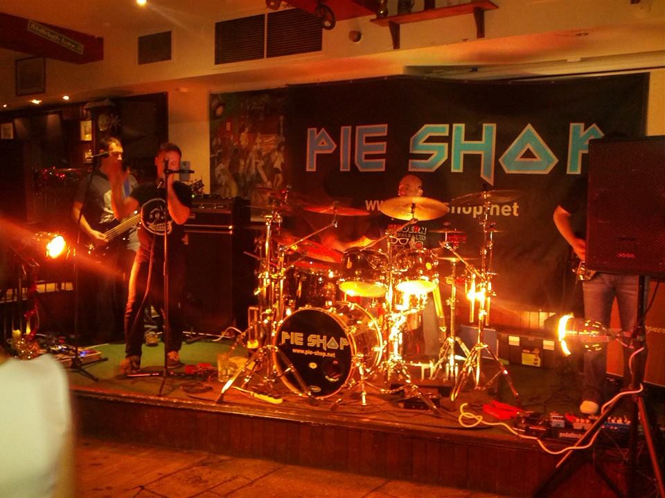 Although the band stayed pretty much within the rock genre, Classic Rock anthems from the likes of AC/DC, IRON MAIDEN, THIN LIZZY, QUEEN, LED ZEPPLIN, JOURNEY, WHITESNAKE, and BLACK SABBATH, 80s rock from GUNS N ROSES, BON JOVI, DEF LEPPARD, MOTORHEAD, ZZ TOP, BILLY IDOL, and METALLICA through to more recent hits from THE FOO FIGHTERS, GREENDAY, STEREOPHONICS and QUEENS OF THE STONE AGE……. PIE SHOP also managed to recreate music from the broadest spectrum, with tracks from the likes of THE WHO, THE JAM, SEX PISTOLS, THE CLASH, THE UNDERTONES, THE CULT, THE POLICE, MUSE, ARCTIC MONKEYS, and the KAISER CHIEFS.