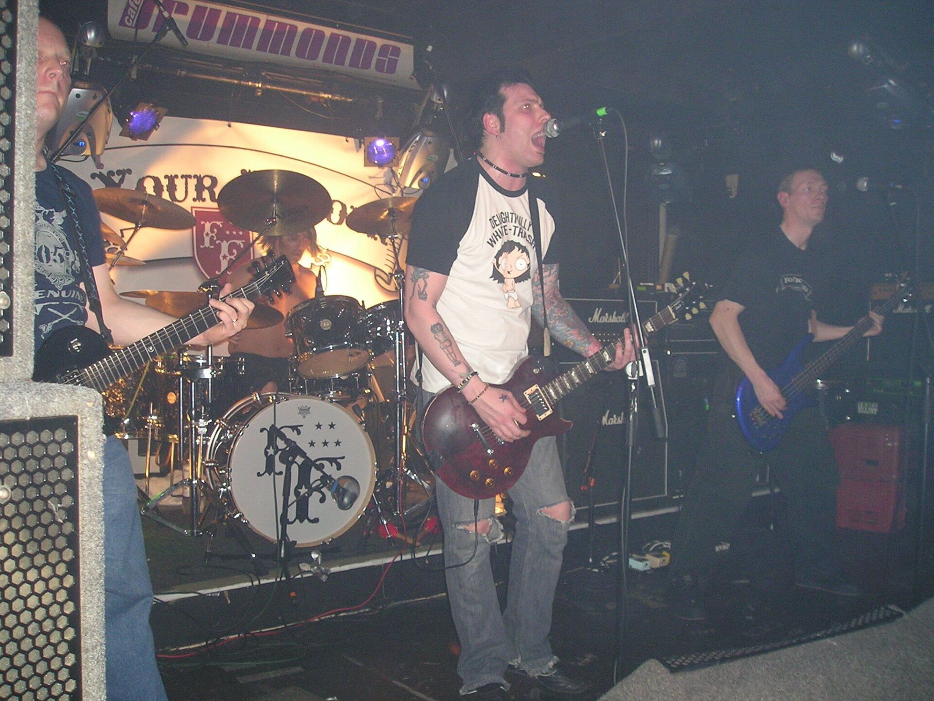 ‘The Darkest’ decided from the start that they wanted to try to recreate the album sound. Even though ‘The Darkness’ have their roots firmly planted in rock, they are far from a three-chord rock band, so to recreate their studio sound from the three-part guitar harmonies to each drum fill took time and effort. As well as selling out the Lemon Tree in Aberdeen, The Darkest went on to play many sell-out gigs, touring around the UK from as far North as the Shetland Isles to London in the South and in November 2004, performed in front of 2 members of the Darkness at The Mean Fiddler in London. This gig earned them VIP passes to the Darkness’s gig in Glasgow.